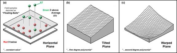 statistics. The previous dicussions described how discrete field data can be used to generate a continuous map surface of the data.