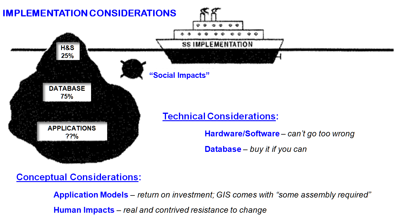 considerations receive the most attention in GIS implementation planning. But in reality the conceptual considerations