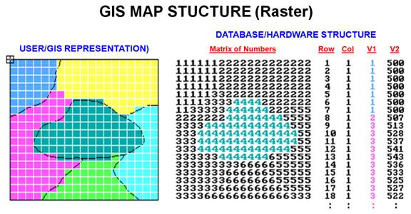 Are You a GIS Dead Head?  describes the structuring of traditional Raster data using implicit topology based on the row/column positioning in a matrix
