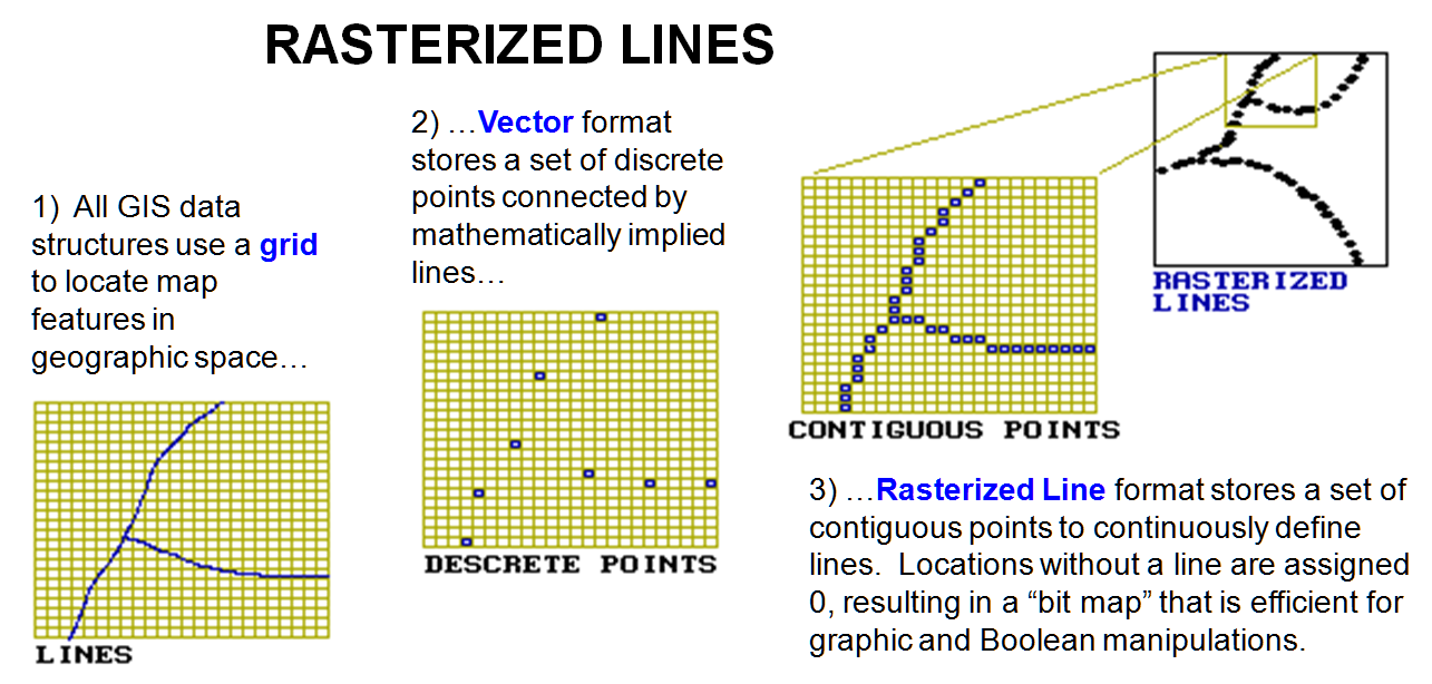 Rasterized Lines and Vectorized Cells describes specialized offshoots of traditional raster and vector data formats