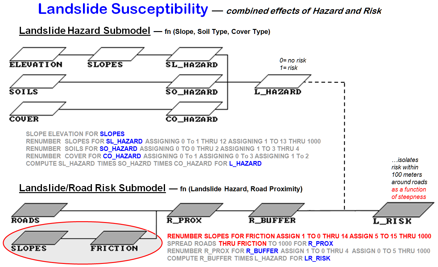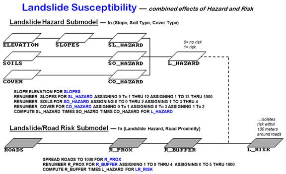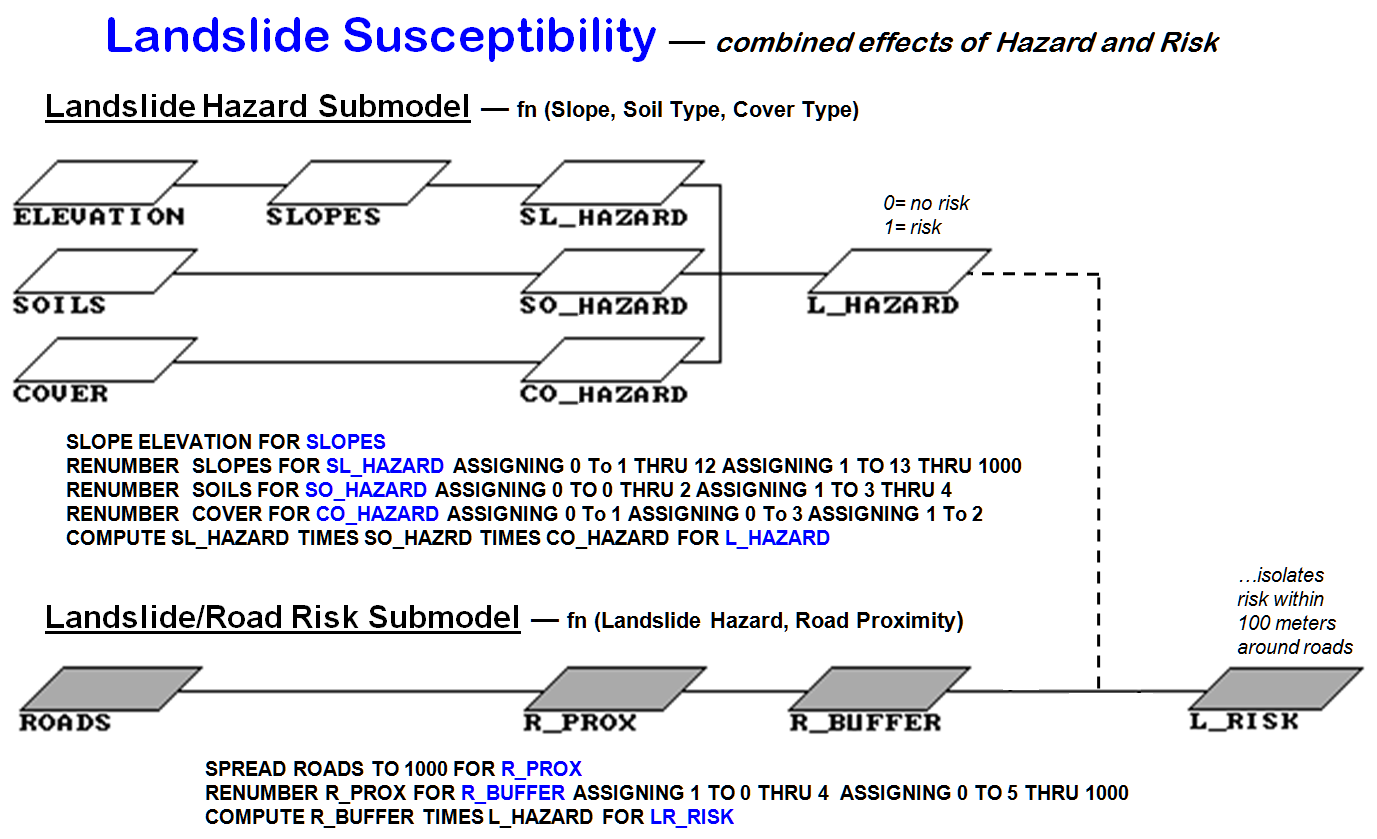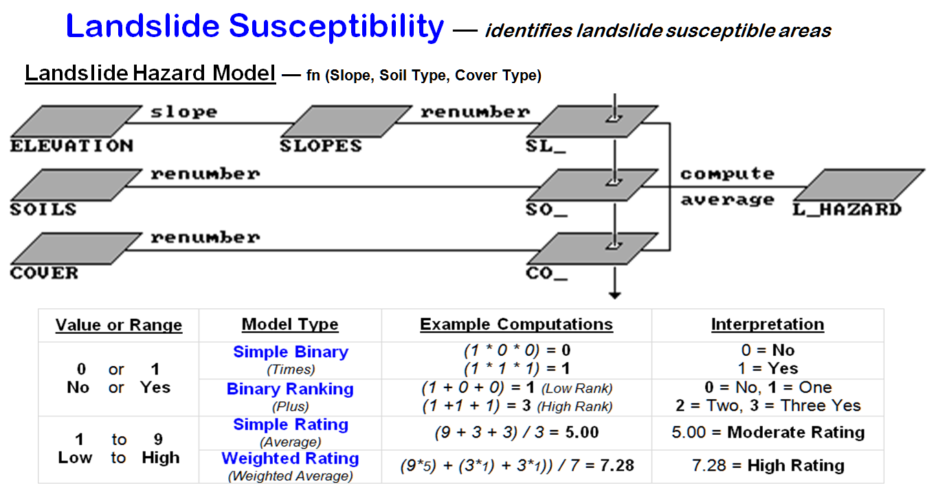 landslide potential— l = susceptible, and 0 = not susceptible. Only locations susceptible on all three maps