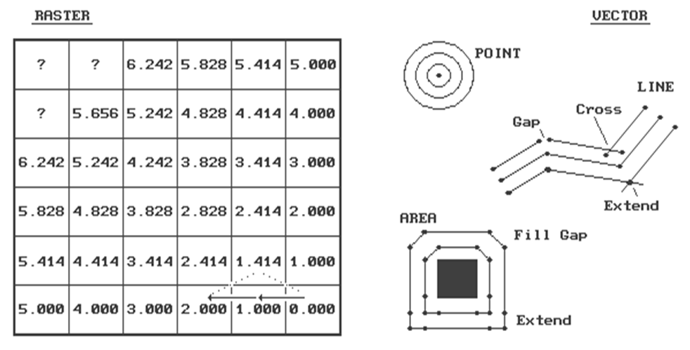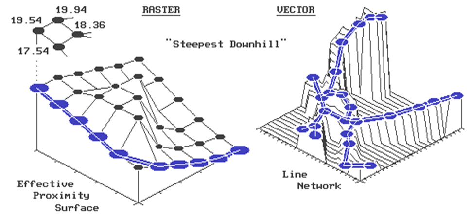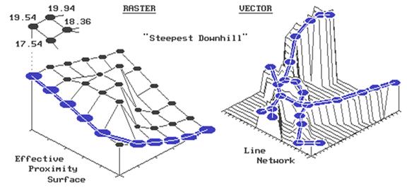 within each cell is counted-- the more lines the steeper the slope. This approach was used in early vector