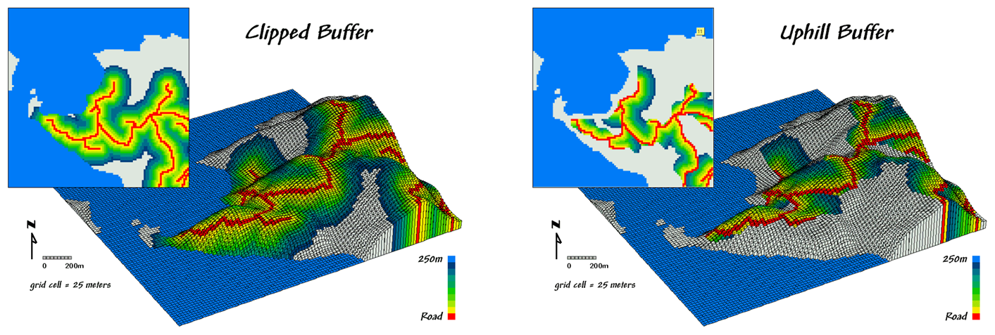 example, consider the Uphill Buffer maps on the right side of