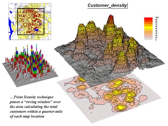 investigation of the customer pattern—Point Density analysis. An analysis grid of 100 columns by 100 rows