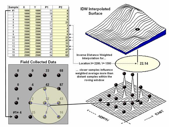 outside the set of samples used for generating the map surfaces. Estimating these values is termed spatial