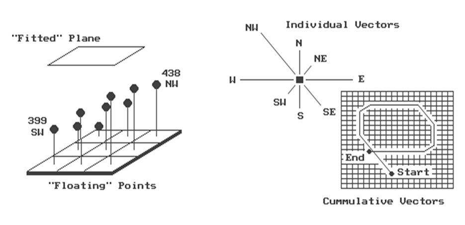 within each cell is counted-- the more lines the steeper the slope. This approach was used in early vector