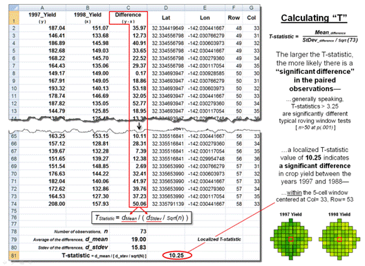 Spatially Evaluating the T-test  illustrates the expansion of traditional math/stat procedures to operate on map variables to spatially solve traditional non-spatial equations