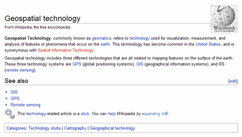 Figure 2. Wikipedia Definition of Geospatial Technology.