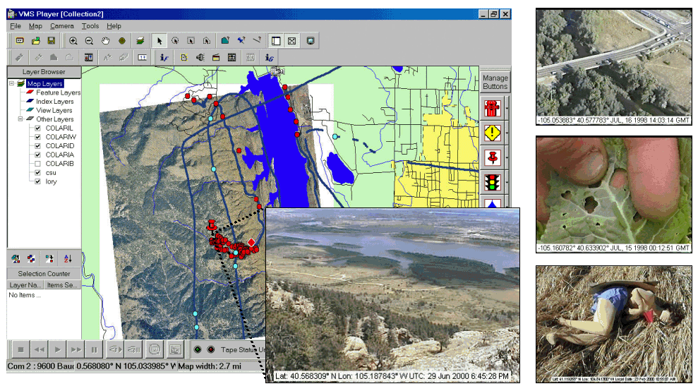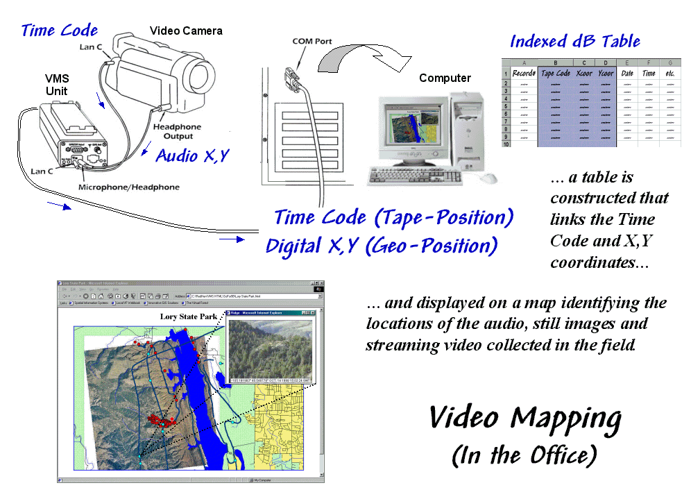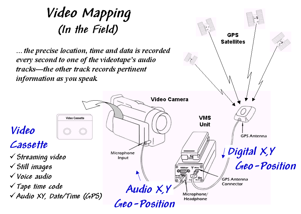 a video camera, VMS unit, notebook or desktop computer, and mapping