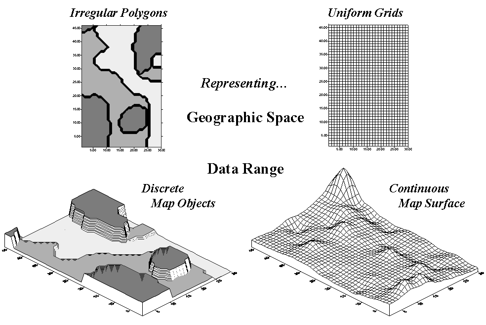 Figure 1. Comparison of zone (polygon) and surface (grid) representations for a continuous variable.