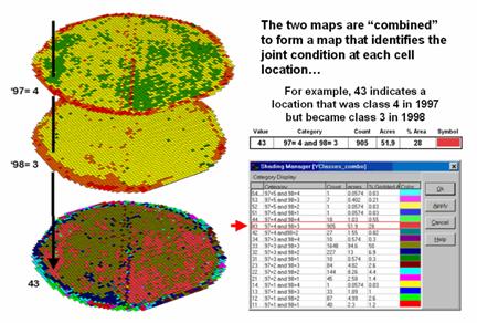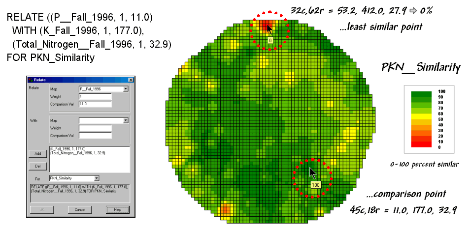 The previous section described procedures for predictive analysis of mapped data. While the underlying theory, concerns and considerations can easily consume a graduate class for a semester the procedure is quite simple. The grid-based processing preconditions the maps so each location (grid cell) contains the appropriate data. The “shishkebab” of numbers for each location within a stack of maps are analyzed for a prediction equation that summarizes the relationships.