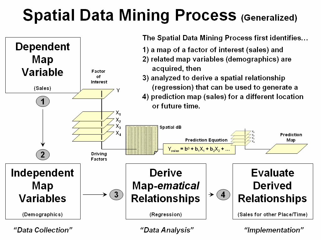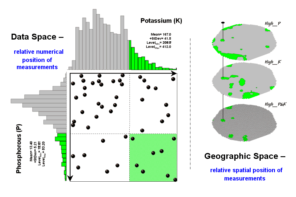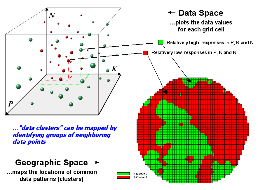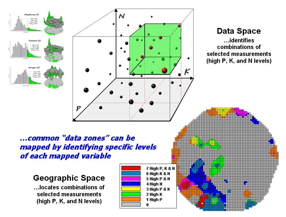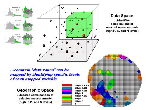 What really is revolutionary is the changing mindset from whole-field to site-specific management and the spatial data mining process used to derive spatial relationships that translate geographic variation in data patterns into prescription maps. Figure 2 depicts a generalized flowchart of the process that can be applied to a number of disciplinary fields.