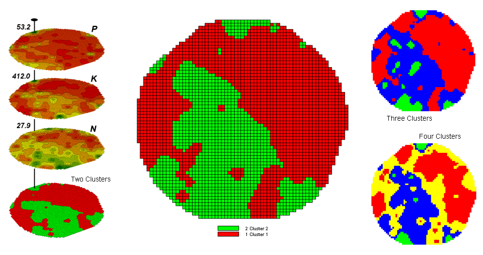 A couple of things should be noted from this example of spatial data mining. First, that there is a myriad of other ways to stratify mapped data—1) Geographic Zones, such as proximity to the field edge; 2) Dependent Map Zones, such as areas of low, medium and high yield; 3) Data Zones, such as areas of similar soil nutrient levels; and 4) Correlated Map Zones, such as micro terrain features identifying small ridges and depressions. The process of identifying useful and consistent stratification schemes is an emerging research frontier in the spatial sciences.
