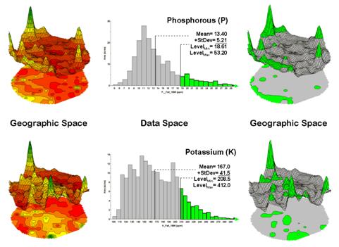 continuous map surface of phosphorous levels (right side of figure 1). First, note the similarities between the two