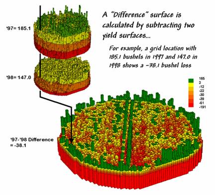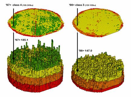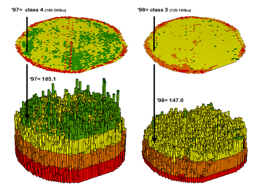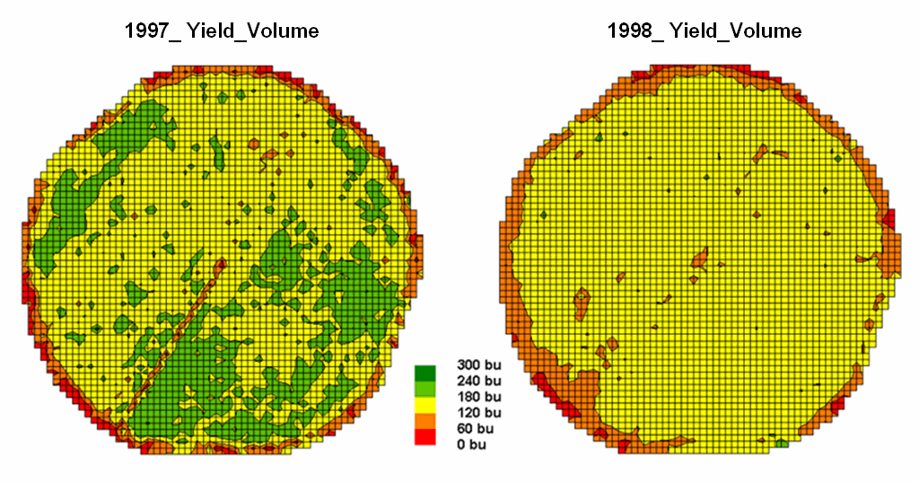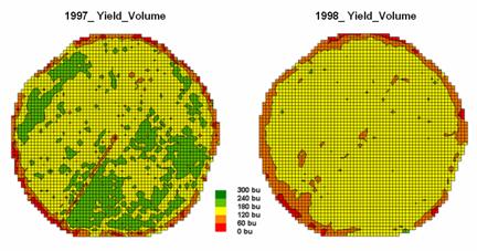 remote sensing imagery) to a map of corn yield for a farmer’s field. Then the equation was used to derive a map of