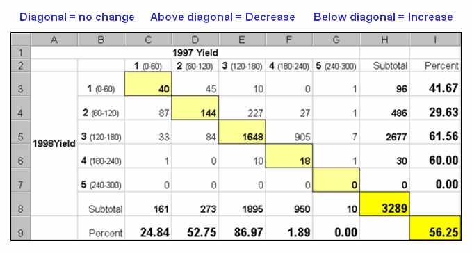 The joint conditions for the spectral response and corn yield maps are