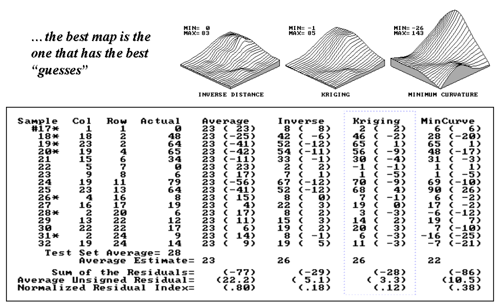 residual analysis, summarizes the differences between interpolation estimates