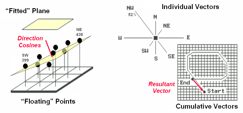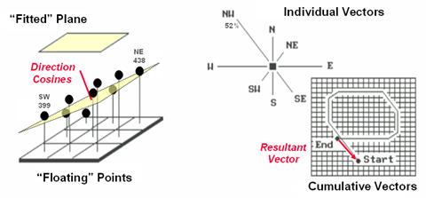 procedure for fitting a plane to the elevation data uses vector algebra, as
