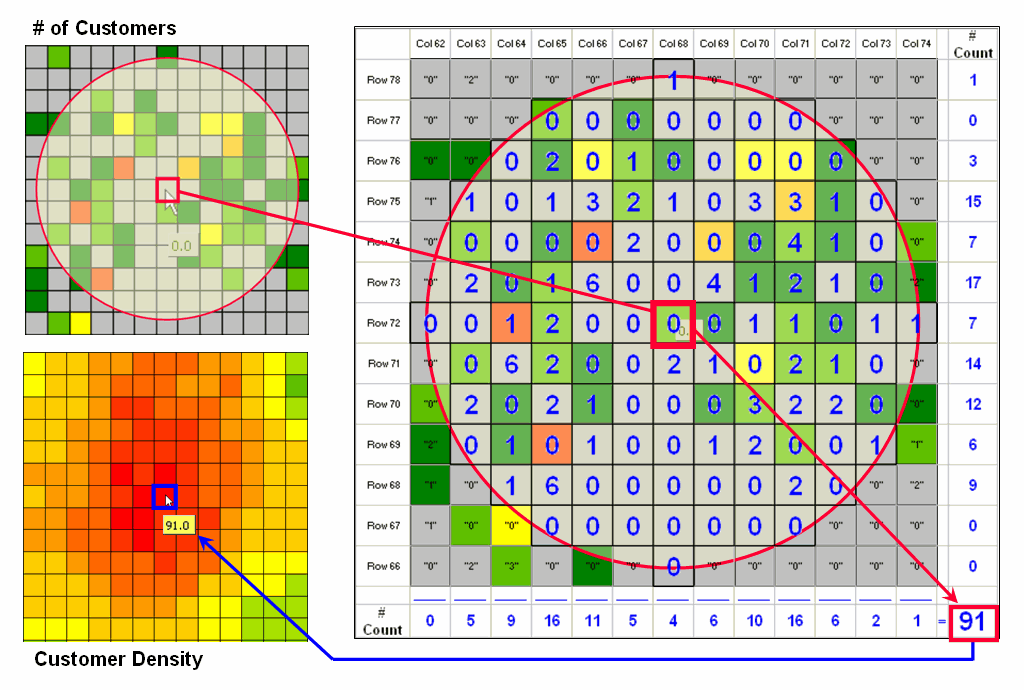 neighborhood analysis— 1) define the neighborhood, 2) identify map values