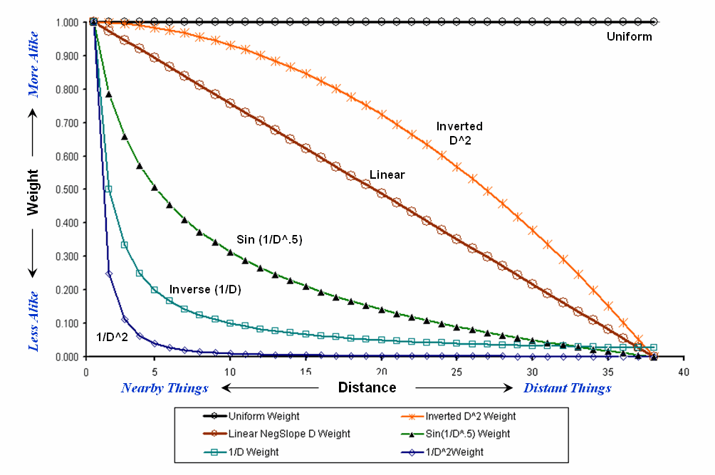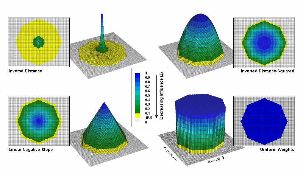 example, inverse distance weighted interpolation uses a fixed shape/size of a