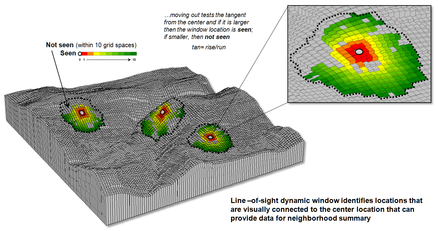 war-like application of line-of-sight windows involves terrain analysis. Areas not seen are “over the hill” in a