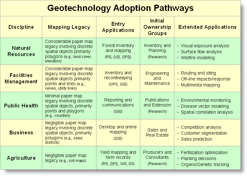 to GIS — explores different paths of GIS adoption for five disciplines