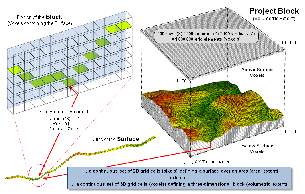 imaginary matrix of grid elements, or “voxels,” that are a direct conceptual