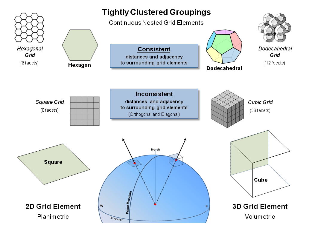 from the center of the earth or bounding ellipsoid changes. Nicely nesting grid elements of a fixed size