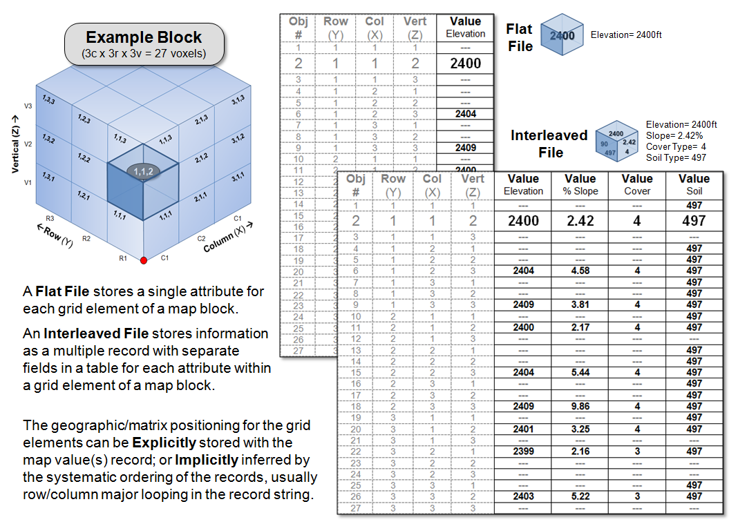 3-dimensional grid data. A Flat File stores a single map value for