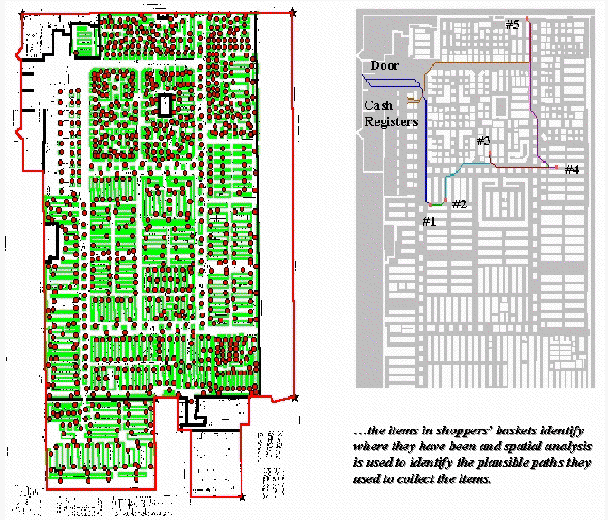 Figure 1. Establishing Shopper Paths. Stepped accumulation surface analysis is used to model shopper movement based on the items in a shopping cart.