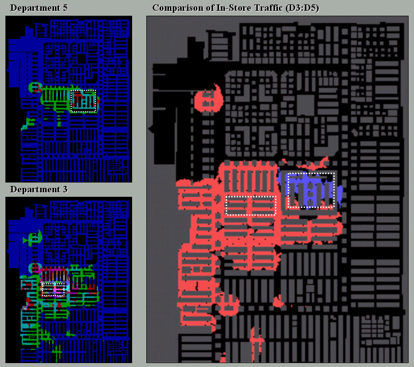 Figure 2. Departmental comparison of shopper movement patterns.