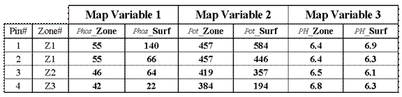 areas and the average phosphorous level is assigned to each zone. These, plus other soil data gathered for each