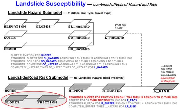 landslide potential— l = susceptible, and 0 = not susceptible. Only locations susceptible on all three maps