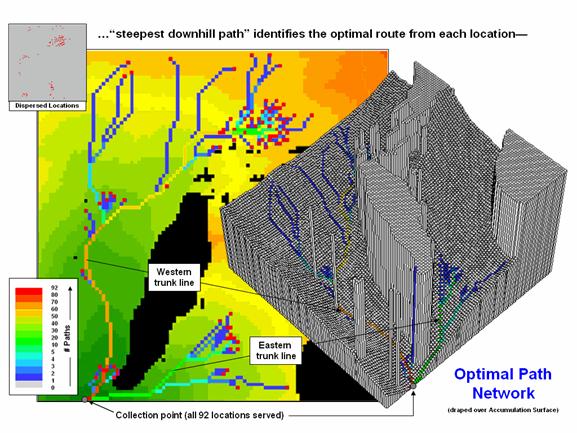 uncover direction and speed of optimal movement (slope and aspect), and a