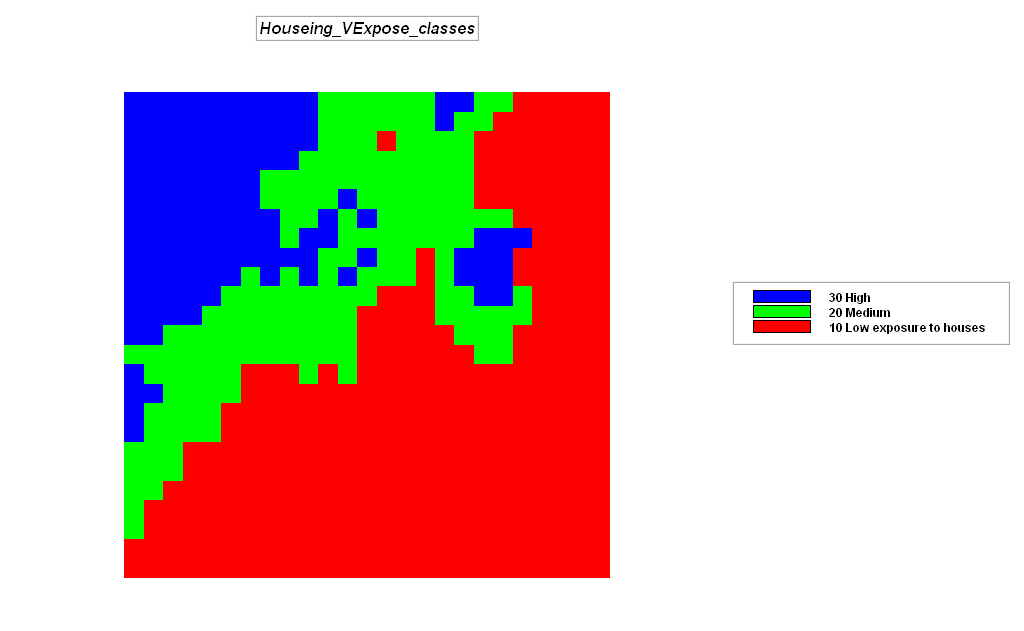 condition class “one-one” (Low, Low) derived by adding a 10= Low Housing_VExpose_class plus 1= Low Roads_VExpose_class.