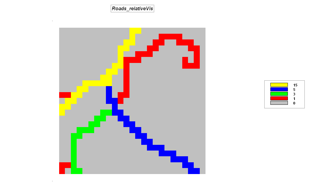 indicating the classes of visual exposure to roads and houses by Map Analysisà Overlayà Calculate