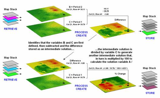 Figure 1.  An iterative processing environment, analogous to basic math, is used to derive new map variables.