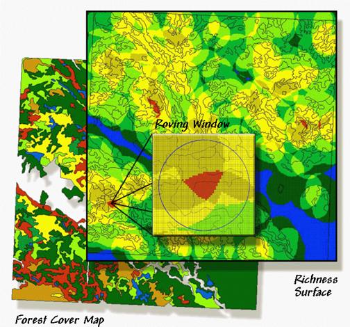 typical forest map locating the various vegetation types in the area. The richness surface is derived by first