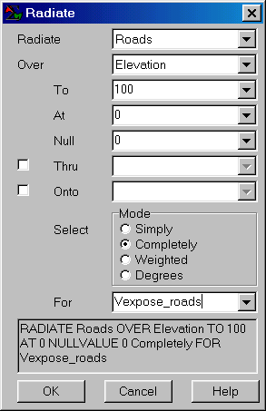 completely for V_expose…creates a visual exposure map identifying how many road locations are seen from each grid cell in the area.