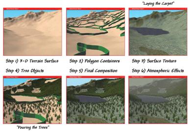 ?? and ??) described the steps in rendering a virtual landscape. The process begins with a 3D drafting program