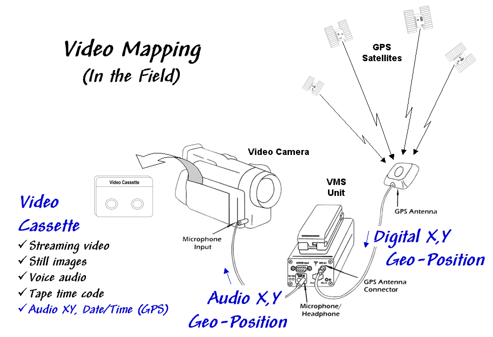 camera, VMS unit, notebook or desktop computer, and mapping software. The software generates a map automatically