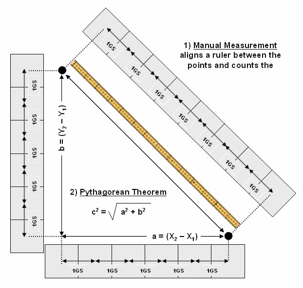 Pythagorean Theorem use grid spaces as the fundamental units for determining